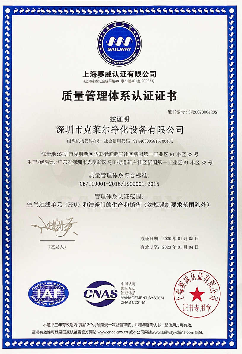 廣東克萊爾潔凈科技有限公司是一家集生產(chǎn)、研發(fā)、銷售于一體的專業(yè)潔凈門窗生產(chǎn)企業(yè)。 公司擁有現(xiàn)代化標(biāo)準(zhǔn)廠房10000多平方米,配備全自動(dòng)靜電噴涂流水線及 3000平以上萬(wàn)級(jí)無(wú)塵生產(chǎn)車間,專供潔凈門及中空窗的生產(chǎn)裝配等。公司不斷引進(jìn)一流生產(chǎn)設(shè)備(如瑞士百超激光切割機(jī)、日本AMADA數(shù)控折彎?rùn)C(jī)、超聲玻璃清洗機(jī)等),采用國(guó)際最先進(jìn)的技術(shù)及裝備確保產(chǎn)品品質(zhì),是華南區(qū)域最具規(guī)模的專業(yè)潔凈鋼制門及中空潔凈窗生產(chǎn)廠家。公司在同行業(yè)率先通過(guò)ISO9001質(zhì)量體系認(rèn)證,并先后獲得多項(xiàng)專利認(rèn)證及榮譽(yù)證書。 KLE purification equipment Co., Ltd. is a set of production, research and development, sales in one of the professional clean doors and windows production enterprises.The company has a modern standard workshop of more than 10000 square meters, equipped with automatic electrostatic spraying line and more than 30 million level dust-free production workshop, specially for the production and assembly of clean doors and hollow windows. The company constantly introduces first-class production equipment (such as Swiss Baichao laser cutting machine, Japanese AMADA CNC bending machine...